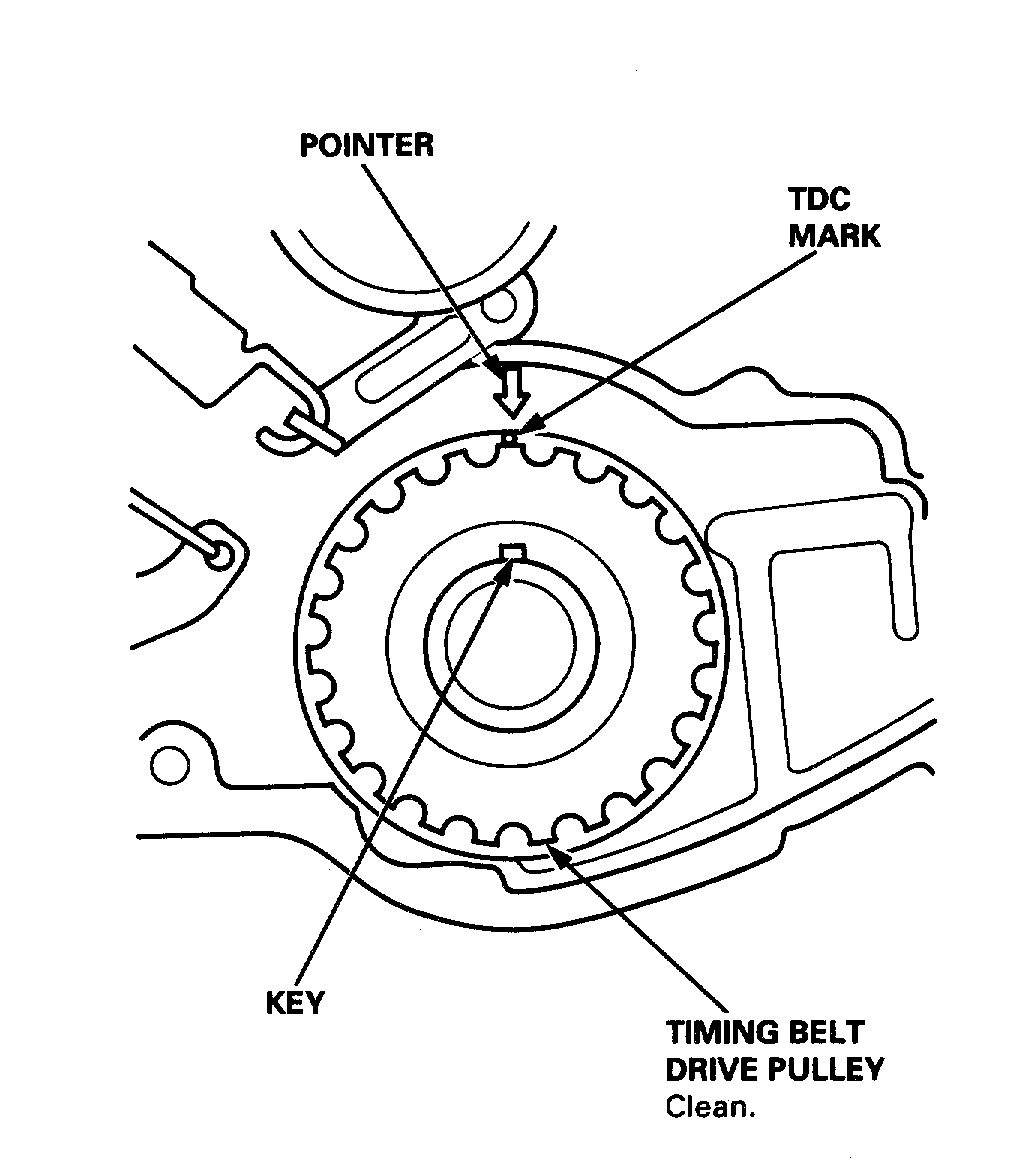 - Make sure the timing belt drive pulley and camshaft pulleys are at TDC.