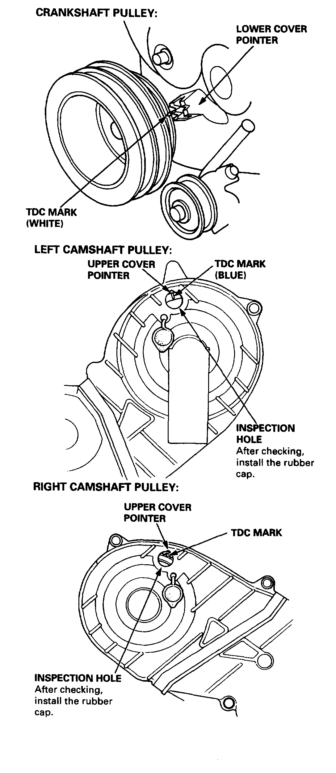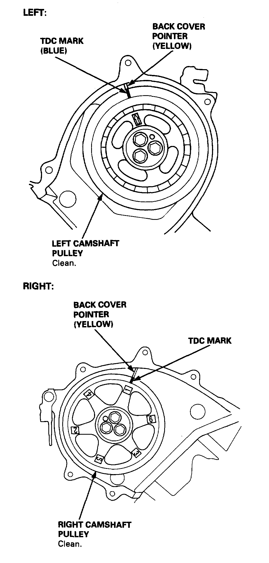 - For easier installation, turn the right camshaft pulley clockwise about a half tooth from the TDC position.