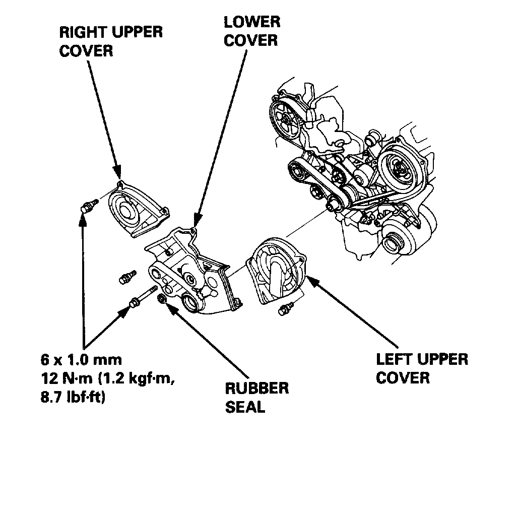 21. Install the upper and lower covers, then install the crankshaft pulley.