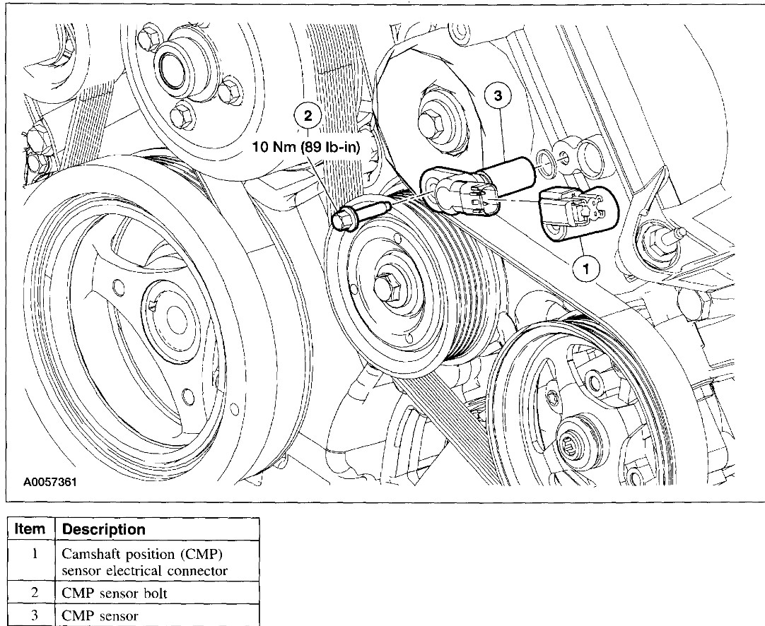 The cam sensor is on the front of the engine hiding behind the power steering reservoir. To get to it you remove the power steering reservoir, disconnect the wiring and remove the bolt, then gently twist and pull to remove the sensor without breaking it. Then use some brake cleaner on a rag to clean the hole, apply some oil to the o-ring on the new one and tighten the bolt to 7 ft lb or 89-inch pounds. However, if you are seeing a code for cam crank correlation it isn't likely the sensors but the timing chains that are the issue. The 4.6, like it's big brother the 5.4 has a multiple chain system and they wear and set those codes.