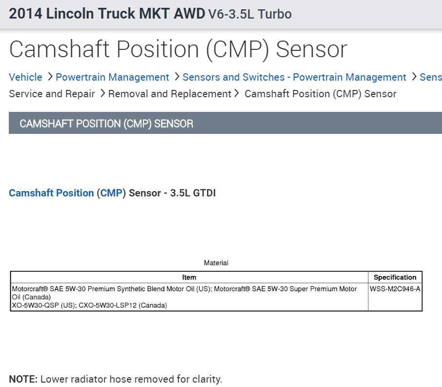 No real symptoms yet other than check engine light comes on then a few days later goes off. Back on, and off for last month. I get code p0016 Crankshaft Position, Camshaft Position, Correlation Bank 1, Sensor A. If I can find the sensor to replace, I figure it is a cheap fix even if it turns out to be wrong as the diagnostics to be more specific is a lot more money. But I don't know where the sensor(s) are? Not all Ford 3.5Ls seem to be the same, especially the F150. Mine is a 2013 MKT ecoboost.