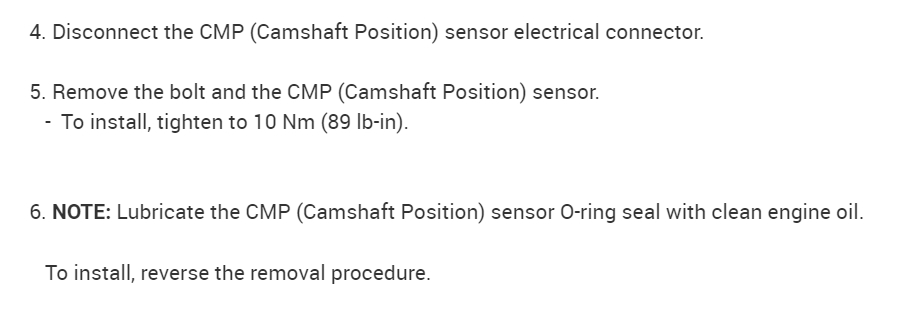Camshaft position sensor, code p0016