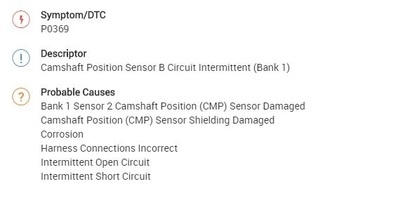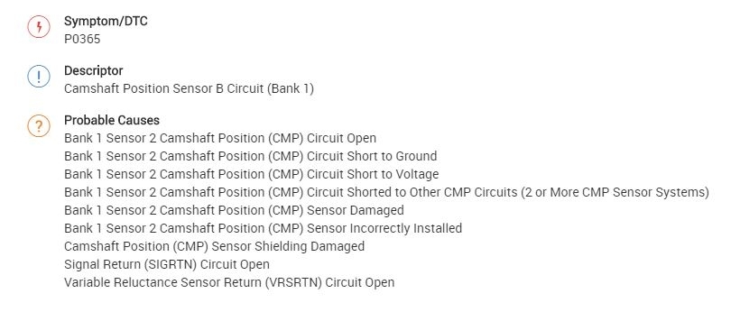 Note:Consider the ignition system, alternator noise, radio frequency interference and crankshaft position (CKP) sensor concerns if DTCs P0340, P0341, P0344, P0345, P0346, P0349, P0365, P0366, P0369, P0390, P0391, or P0394 are present.