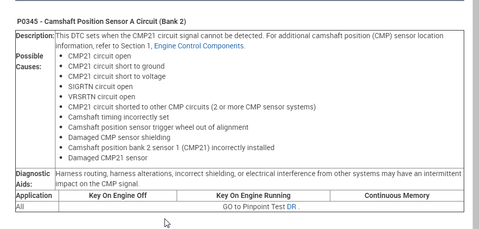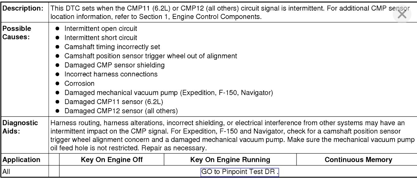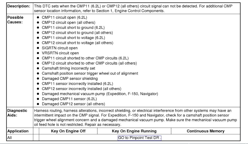 DR: CAMSHAFT POSITION (CMP) SENSOR - PINPOINT TEST