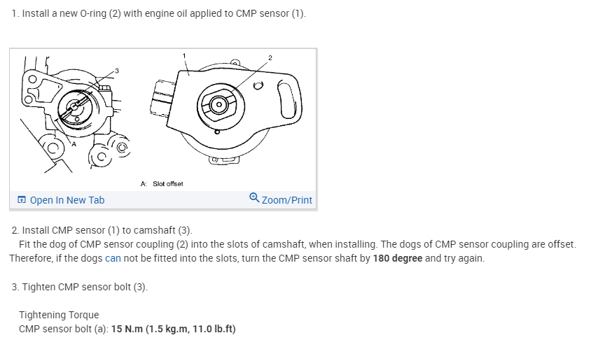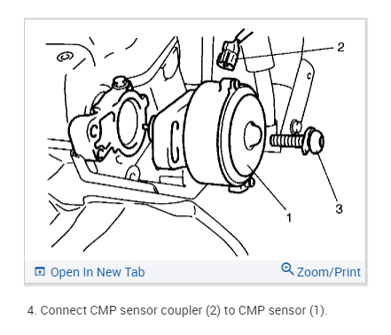 The pics below are for the removal and replacement of the camshaft position sensor. Let me know if this helps or if you have other questions.