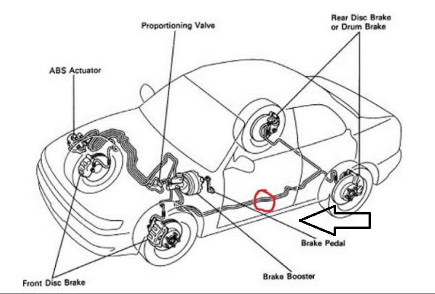 There's a second way that valve can be tripped, and it relates to your lack of knowledge about brake bleeding. You tried bleeding the system to remove air that had no way of getting into the system in the first place. There was no air to remove, but with common methods, we open one bleeder screw at a time, then many competent do-it-yourselfers think they need to have a helper push the brake pedal. It is possible to get away with that if the pedal is never pushed more than about a quarter way to the floor, but most of the time the helper runs the pedal down as far as it will go. That can instantly cause multiple new problems, but for this story, that will trip the valve in the master cylinder. From that moment, no brake fluid will flow from one front brake and the opposite rear one. A lot of people even replace the master cylinder, then cause the same problem with that one when they try to bleed the system.