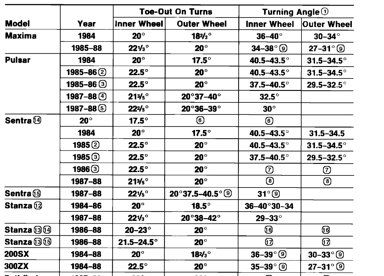 These are the alignment specifications for one with stock suspension. The tie rod extension in the second picture should measure 1.689 inches on a 300Z. The last image is the turning angles. On your car these are checked and set with the engine running at an idle and 25 pounds of force on the steering wheel rim.