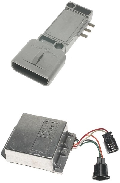 There were two ignition systems used by Ford in '84. One used a TFI module, (thick film integrated), bolted to the side of the distributor. That's shown at the top of the photo. More common for '84 was the ignition module shown at the bottom of the photo. That is not a computer as we think of an electronic control module, (ECM) or power train control module, (PCM). Those have memories and can set diagnostic fault codes to indicate a circuit that needs further diagnosis. The modules in this photo simply take the place of the breaker points in older systems. They drive the ignition coil, to create a spark when they're triggered by a pulse from the pick-up coil inside the distributor. That pick-up coil sits where the breaker points used to be.