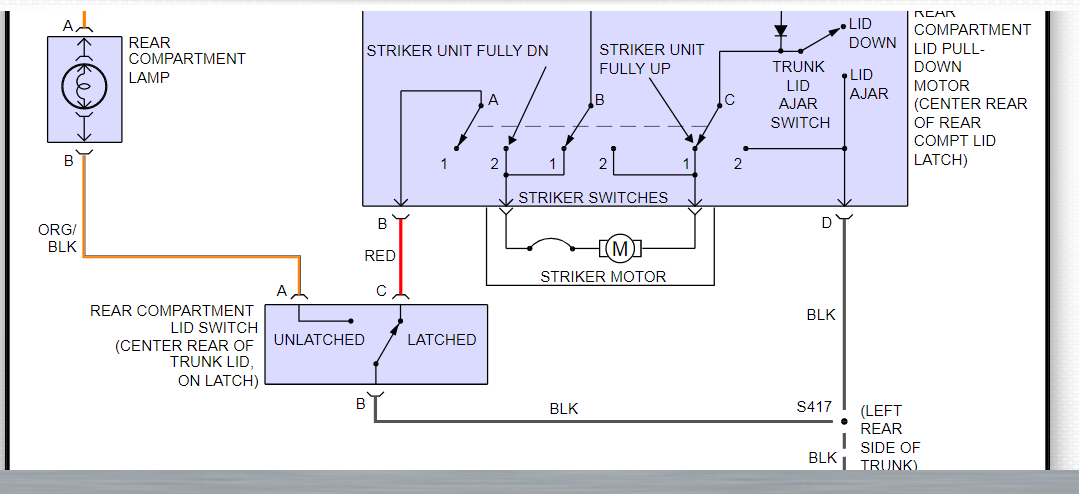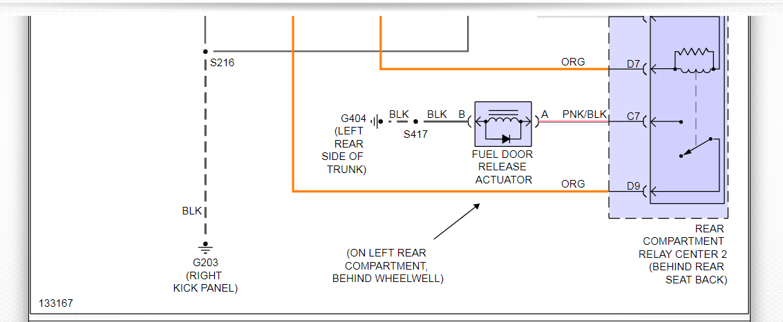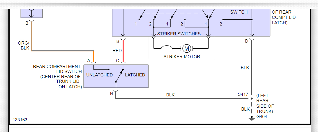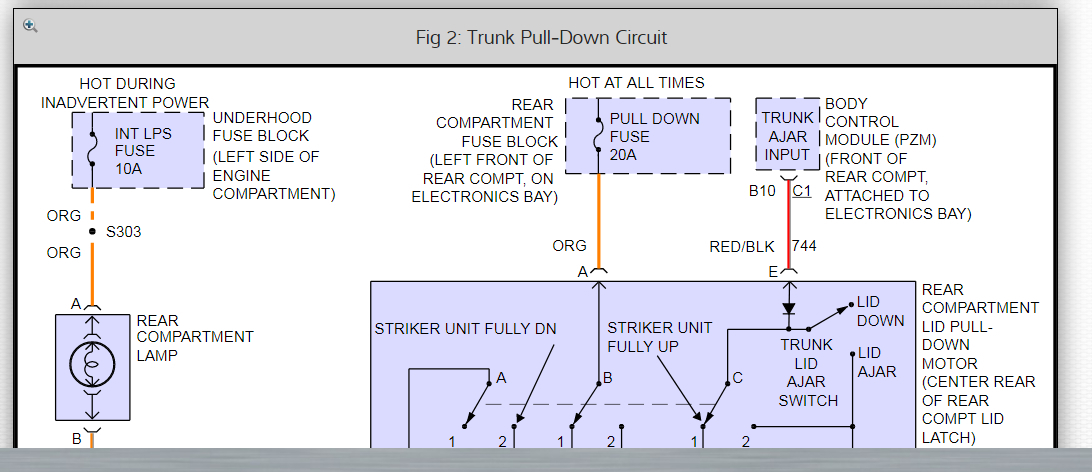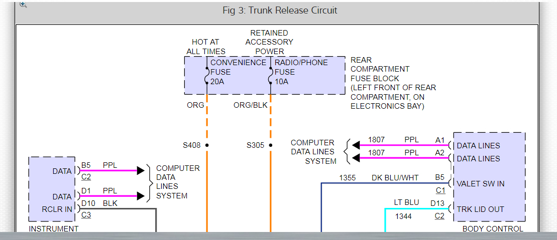 This could be a problem with ground #404, which is located in the left rear of the trunk. Please check this ground and make sure there is no corrosion, clean, tight, and making a good metal to metal connection. This ground is responsible for completing both the trunk and fuel door circuits, as you can see in both of the system wiring diagrams that I have included in the diagrams down below. Please go through these wiring diagrams, check the ground and get back to us with what you find out.