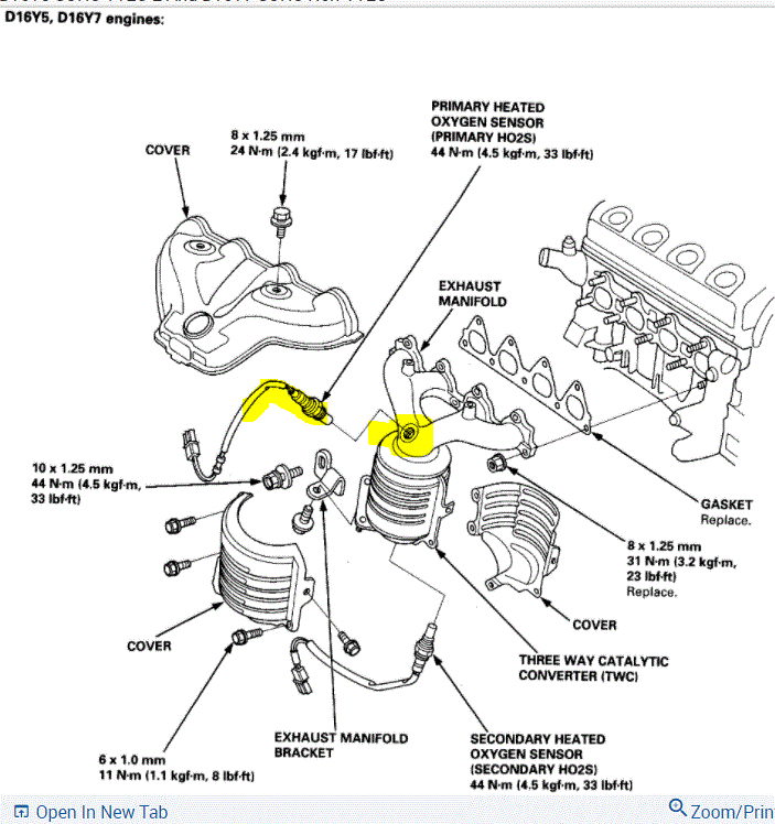 B16A2 engine: 210 - 260 kPa (2.1 - 2.6 kg/Sq.cm, 30 - 37 psi)