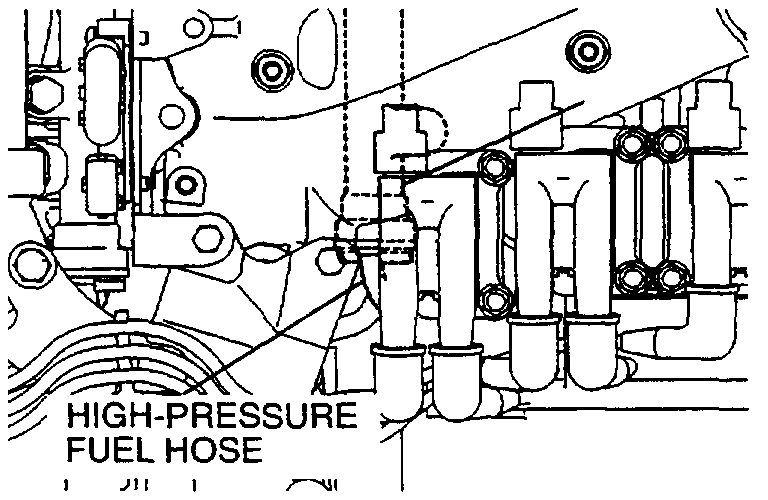 2. Disconnect the high-pressure fuel hose at the fuel rail side.
