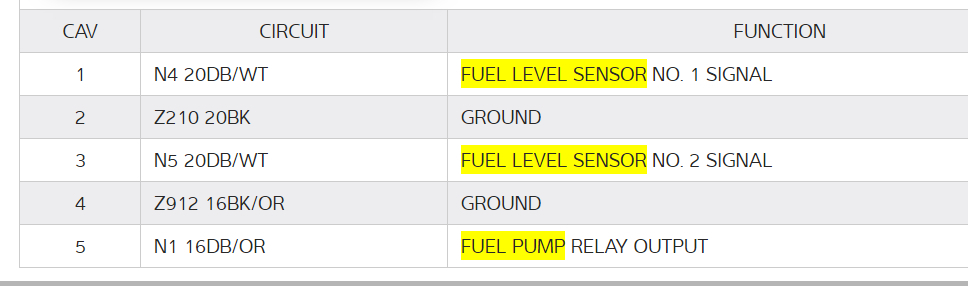 In the diagrams down below I have included a wiring diagram of your vehicle's fuel pump, a diagram of the connector and a diagram with location and callout for the power distribution center. Please go through these guides and get back to us with what you are able to find out.