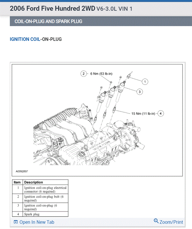 On this vehicle, each cylinder has its own coil pack. So, that means you would need six coil packs and six spark plugs. My concern is that it won't make a difference. Also, to access all coil packs, you need to remove the upper intake manifold.