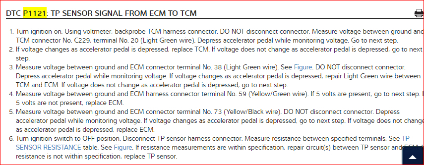 Okay, here are the other three code step-by-step pictures for you. One again is related to the ECM communication to the transmission control module, one is for the throttle position sensor, and the other is for the idle air control valve. Looks like you have a lot of wiring checking to do. Here again is a wire checking tutorial: