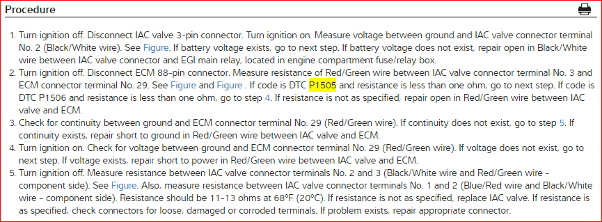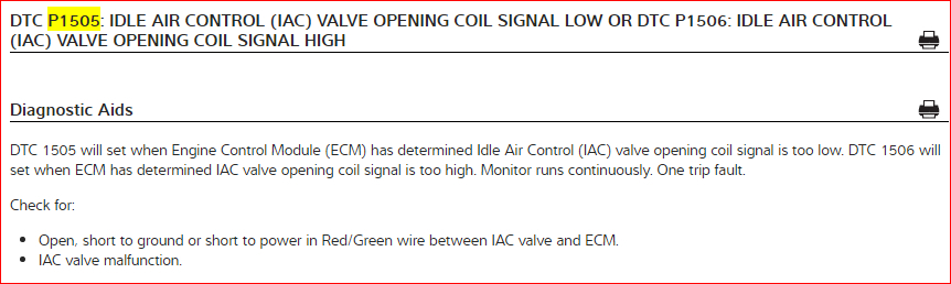 Okay, the IAC has been changed out again with another one and still nothing. Ran the OBDI test again and different codes this time. They are P1121 and P1115.