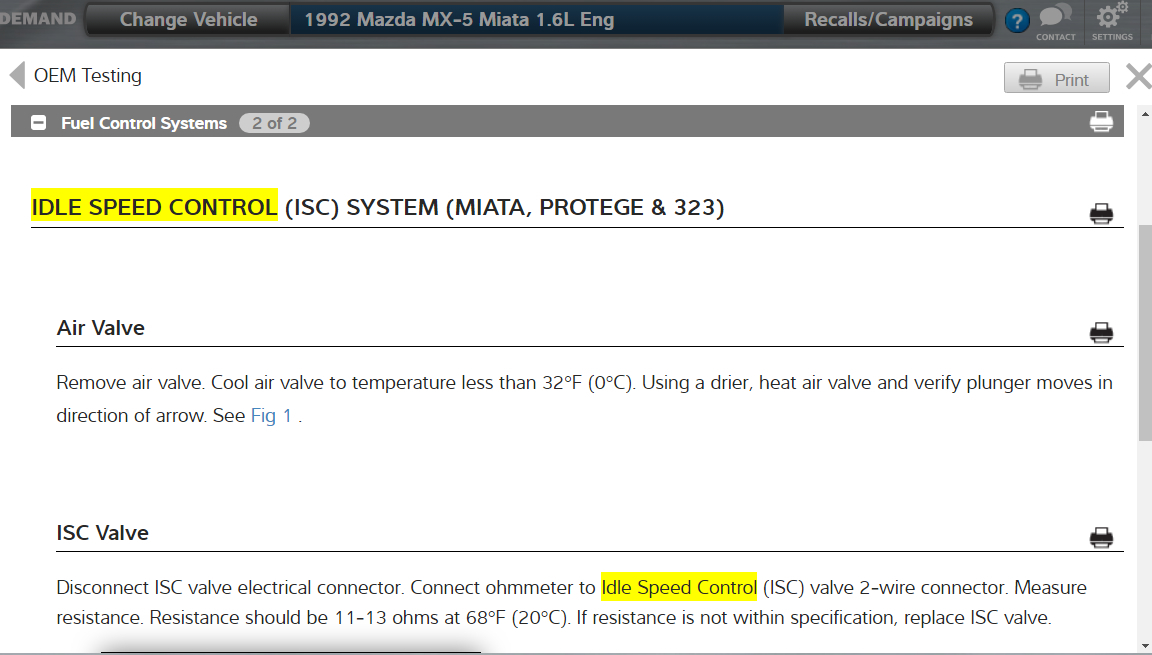 Very nice. This could be a problem with your vehicle's Idle Air Control Valve (IAC). In the diagrams down below I have included troubleshooting directions for the IAC for your vehicle. Please go through the guide and get back to us with what you are able to find out.