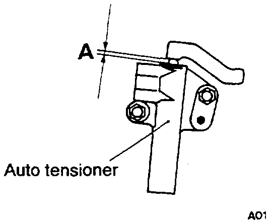 (3) Turn the crankshaft two revolutions in the clockwise direction so that the timing marks are aligned. After leaving it for 15 minutes, measure the amount of protrusion of the auto tensioner.