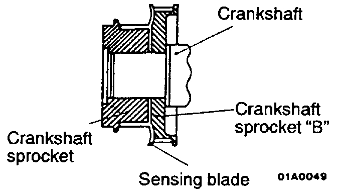 1) Ensure that crankshaft sprocket "B" timing mark and the silent shaft sprocket timing mark are aligned.