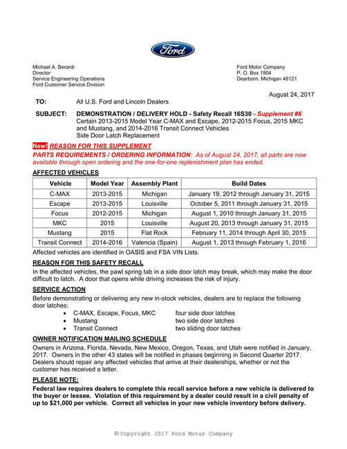 Ford has a recall for this concern. Have you had this done?