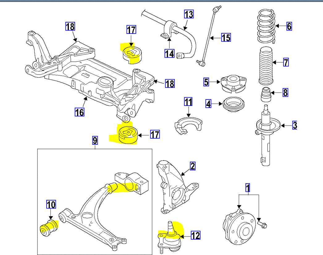 I attached an exploded view of the front suspension. Check the items I highlighted for play. As far as the CV joint, it has to have a small amount of in and out play.