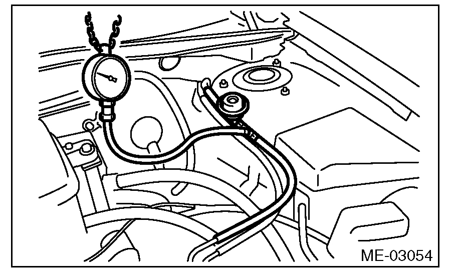 ^ Before removing the fuel pressure gauge, release the fuel pressure.