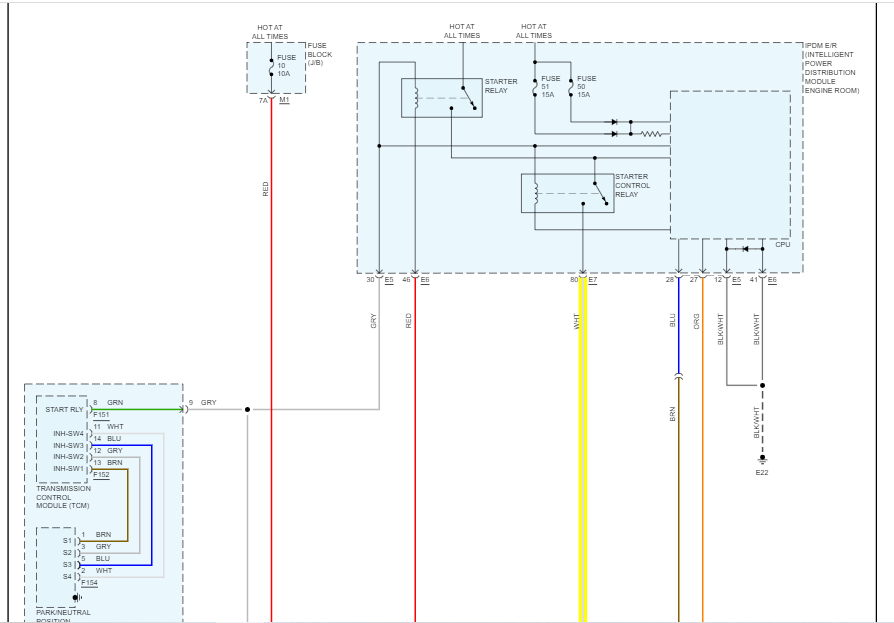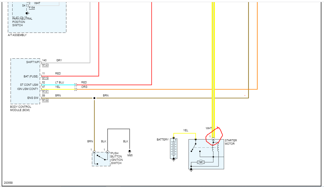 At the starter motor, there will be a heavy gauge yellow wires. It should have battery voltage at all times. Confirm that first.