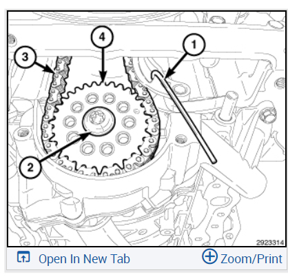 Graphic shows the engine timing cover removed for clarity.