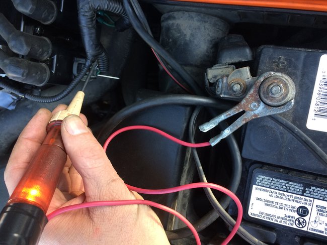 Here are pictures from last message.as you can see test light comes on when on battery positive going to coil positive and to coil negative back-probed and no key on get relay clicks and energized sound like a priming sound. Any last ideas as I am going to get a PCM from auto wreckers.
