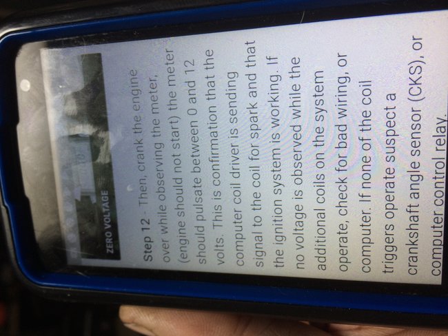 Yes Ken I can open up PCM with four screws, one on each corner. It is hard to wrap head around this PCM issue as we have five volt reference proper places and have injectors pulsing and should it not be the same pulsing to coils? If injectors pulse is good that should mean coil should pulse on signal wire with test light on battery positive going to coil signal wire but it is not. What controls the switching to coils then? I thought crank sensor? Or is it the cam sensor? But must be a PCM issue cause why the relay clicks etc., when test light on battery positive going to coil negative signal or battery positive? Something else in PCM circuit is shorting with coil signal circuit to get those relay clicks etc. Also, see attachments below as I used 2CarPros posts on internet to test and you guys mention as shown suspect a crank sensor or computer controlled relay. Could it be a relay after all?