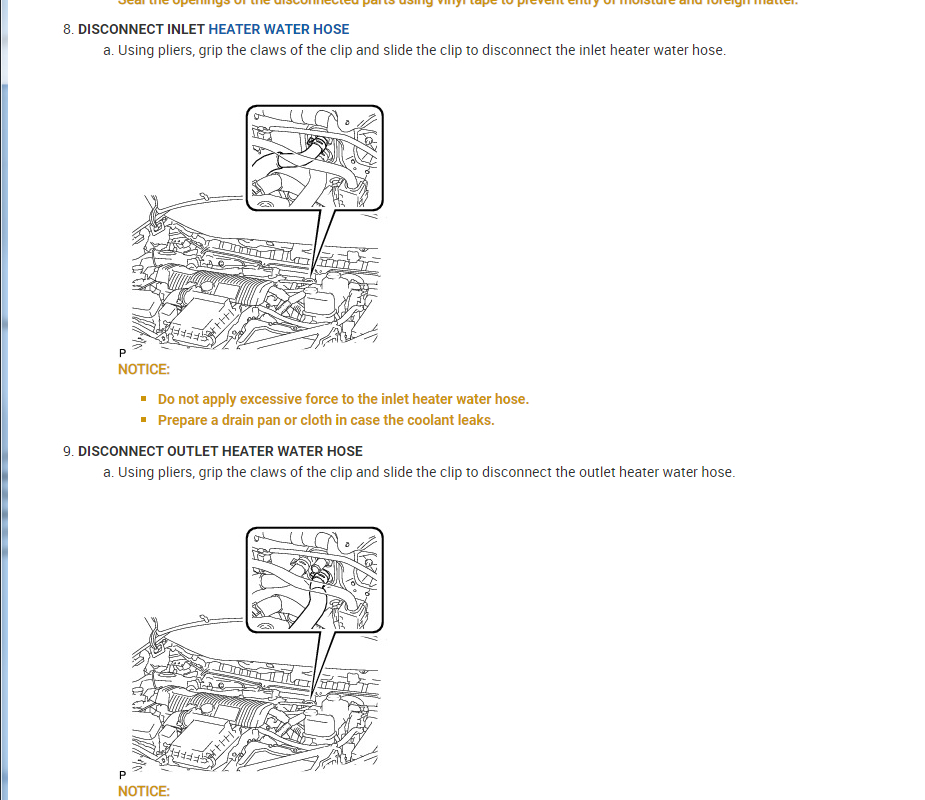Let's start with checking the inlet and outlet heater core hoses. I attached below the documents that show where these are. Just start the engine and let it get hot but not to the point of overheating. Then turn the heat on full and the heater core hoses should be about the same temp and hot to the touch.