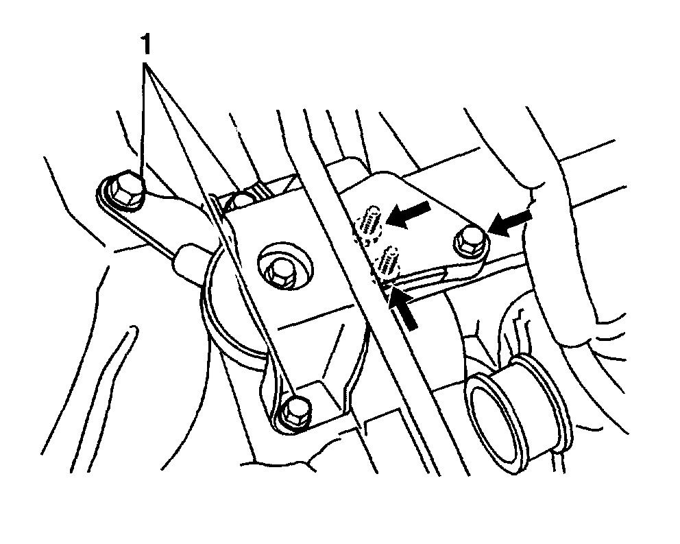 3. Remove the right side engine mount-to-engine bracket bolts and nuts (1).