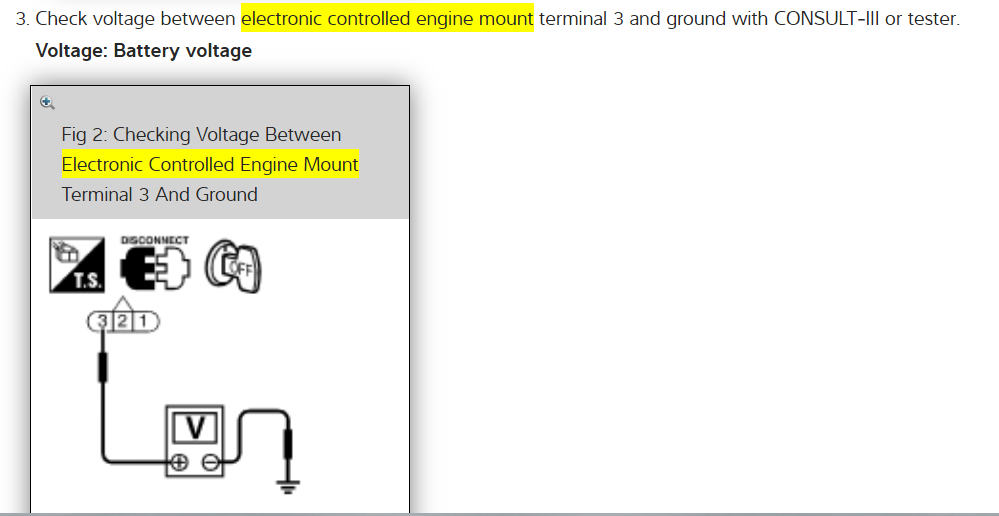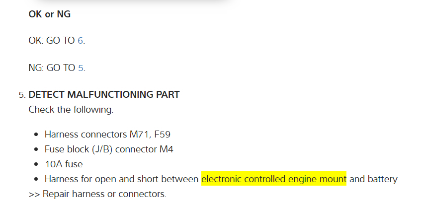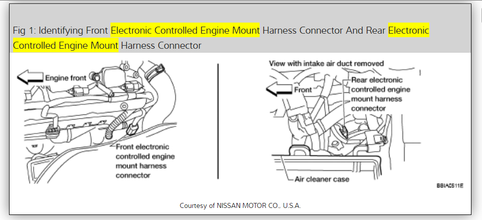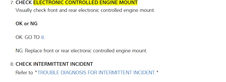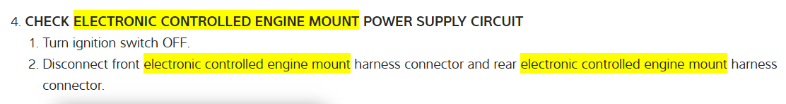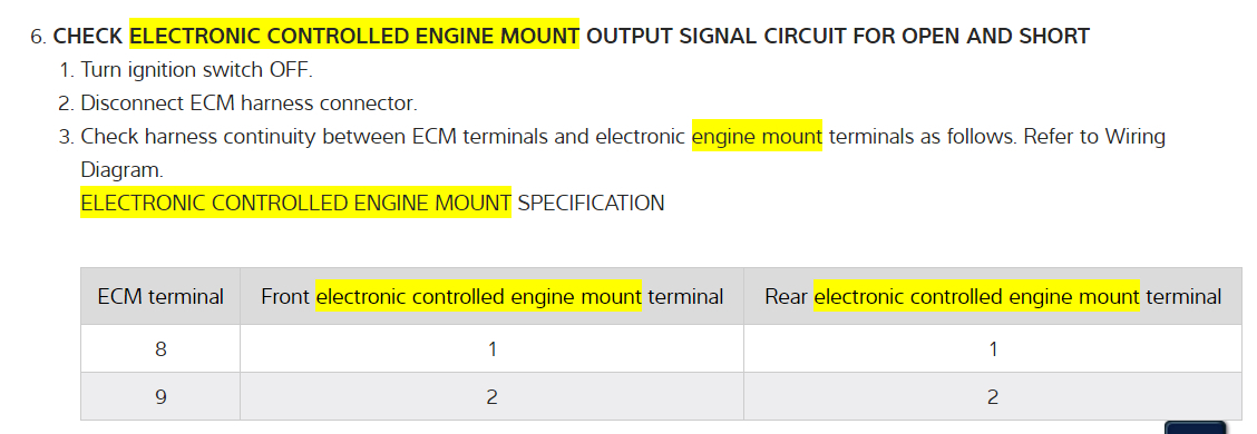 I have included factory diagnostic troubleshooting guide for your vehicle's motor mounts in the diagrams down below. Please go through this guide and get back to us with what you find out.