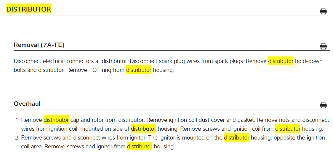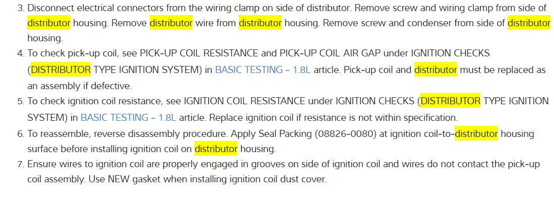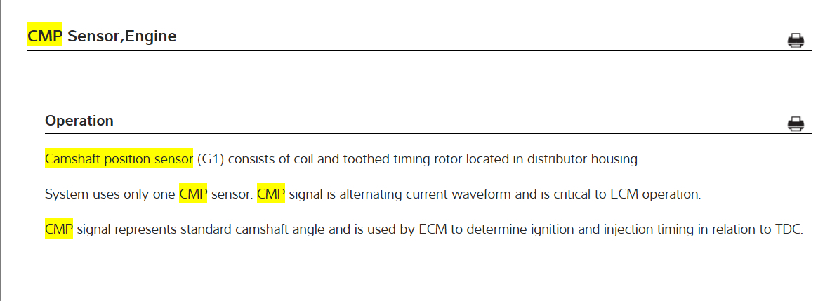 This could be a problem with either your Crankshaft Position Sensor (CKP), or, more likely, your vehicle's Camshaft Position Sensor (CMP). They are both located in your vehicle's distributor housing. so I have also included the instructions for the removal, overhaul, and installation of the distributor. Please go through these guides and get back to us with what you are able to find out.