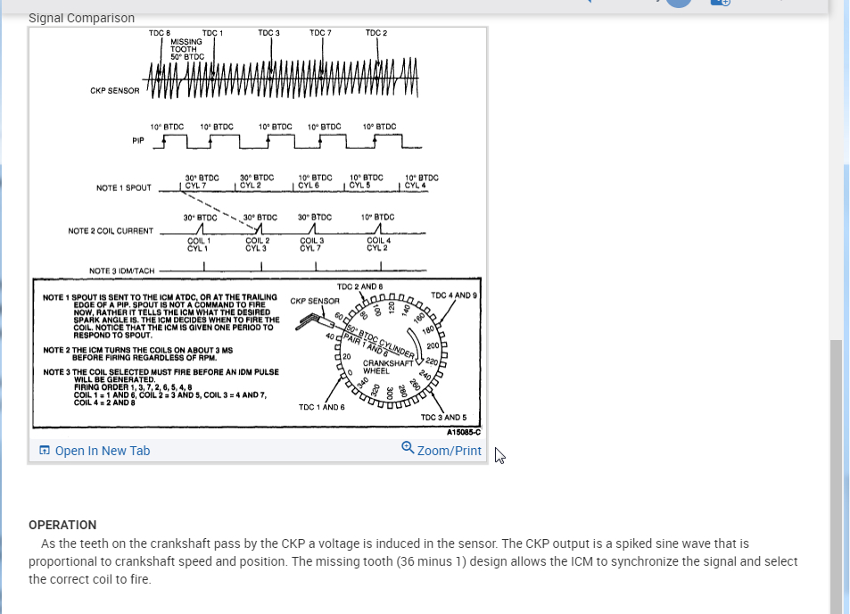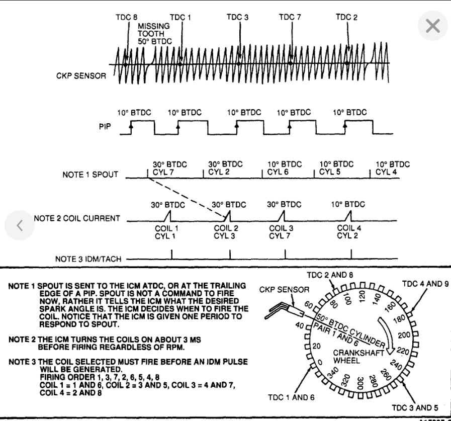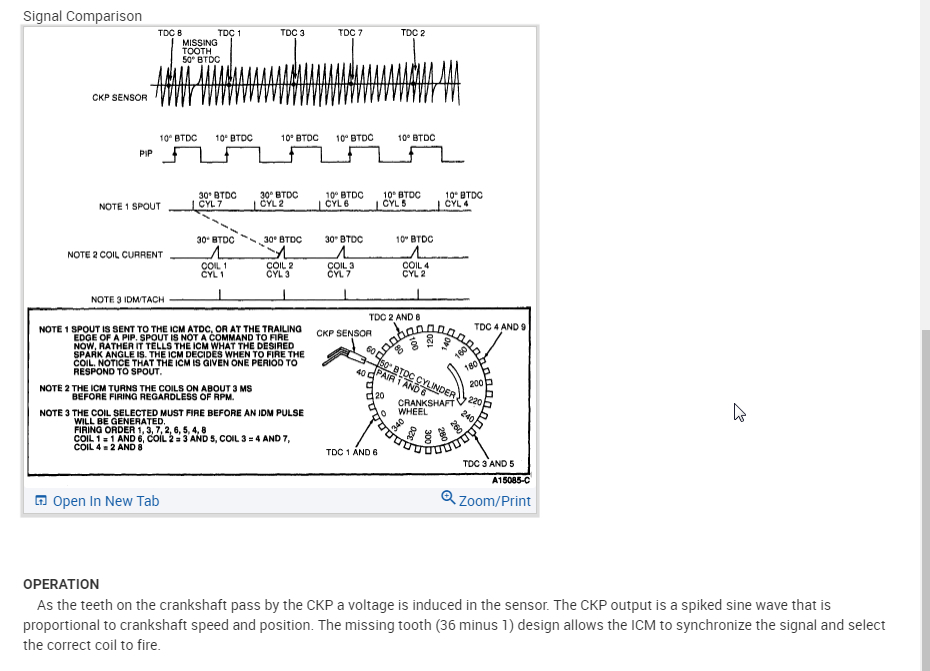The EDIS module receives input from the Variable Reluctance Sensor (VRS) style Crankshaft Position Sensor (CKP) in order to identify the passing of the missing tooth on the VRS trigger wheel. The module is said to be "synchronized" when the missing tooth is found. Synchronization is essential to the EDIS module in order to track the angular position of the crankshaft relative to a fixed reference and when it should fire the proper coil.