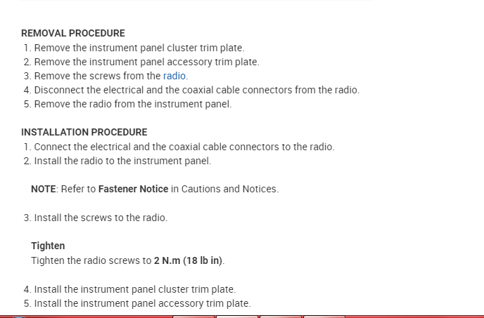 I have included the vehicle manufacturer's instructions for the removal and installation of the radio in your vehicle. I hope this helps. Please get back to us with how everything turns out.