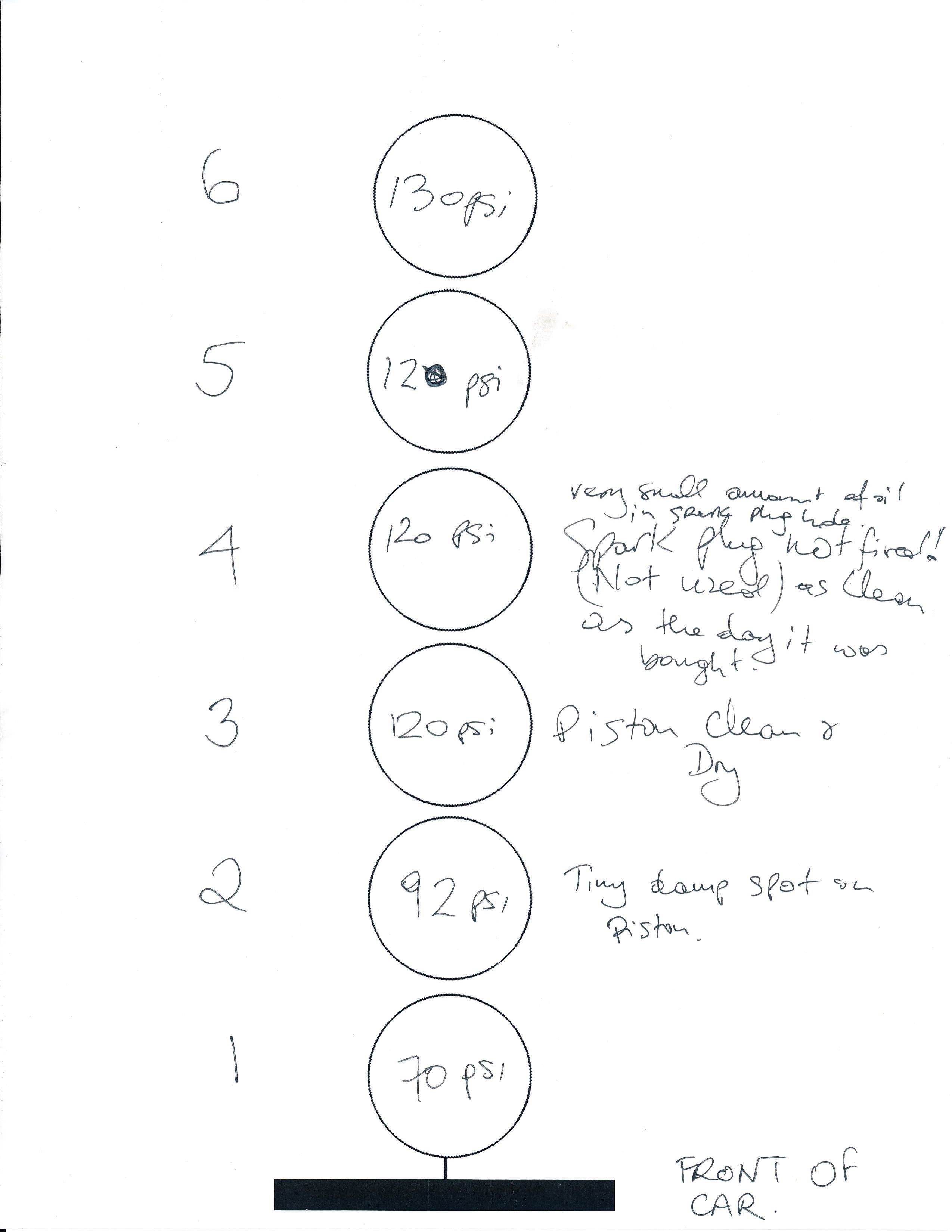 You will notice that the front two cylinders are the worst with 70 PSI in cylinder #1 and 92 PSI in cylinder #2.
