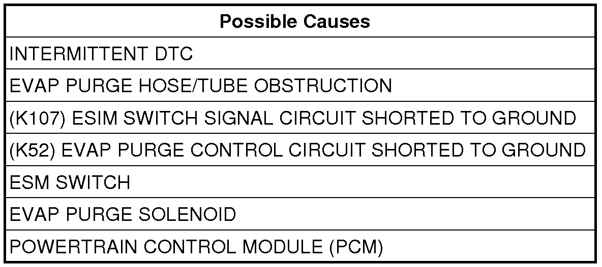 - Repair the (K52) Evap Purge Control circuit for a short to ground.