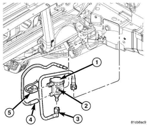4. Remove purge hose (4) from evaporator purge solenoid (1).