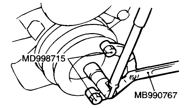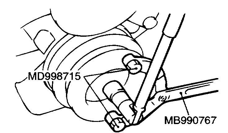 Use special tools MB990767 and MD998715 to remove the crankshaft pulley from the crankshaft.