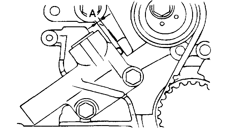 3. Loosen the center bolt of the tensioner pulley, then remove the timing belt.