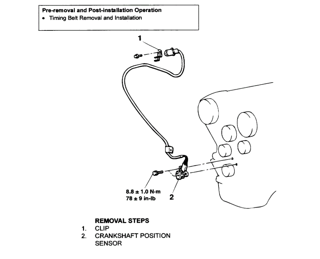 The bad thing is this. On this vehicle, you need to remove the timing belt to replace the sensor. If you look at the last pic below, you can see the sensor and all that holds it on. The directions for replacing it are in the pic.
