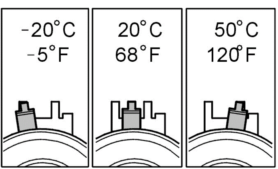 At higher temperatures, for example with the engine at operating temperature or at higher ambient temperature, the needle is further to the right.