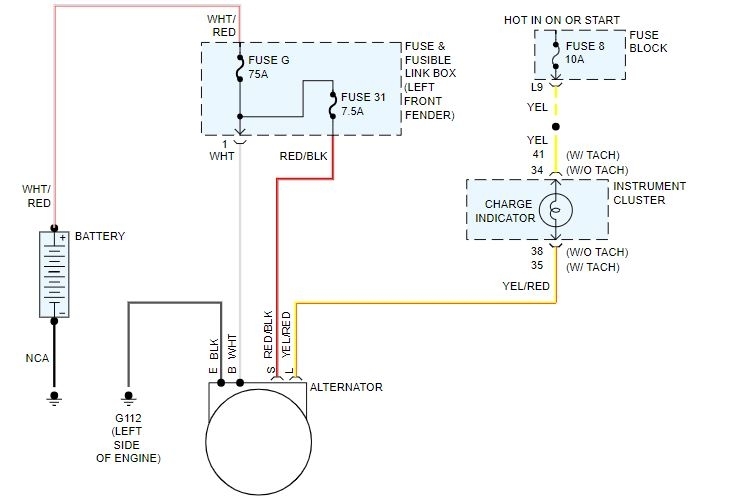 The first thing I want you to check are fuses. I have attached a wiring schematic for the entire charging system. First, check fuses 8, 31, and the G which is a 75 amp fuse right from the battery. Locations are indicated on the schematic.