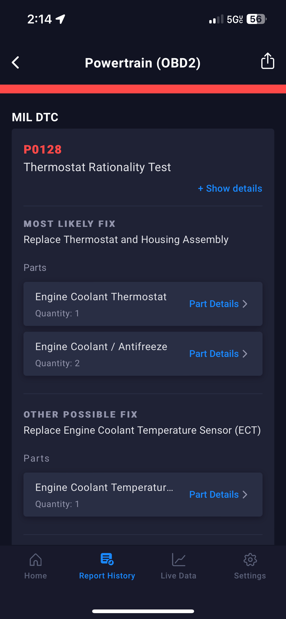 The check engine light is on but it hasn’t overheated.