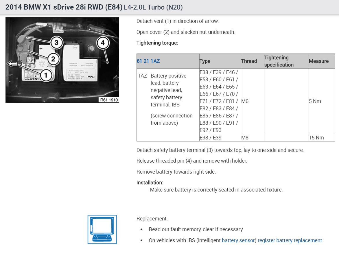 When installing a battery of a different size or a different battery type, this change in vehicle data must be programmed into the vehicle data in accordance with specifications.