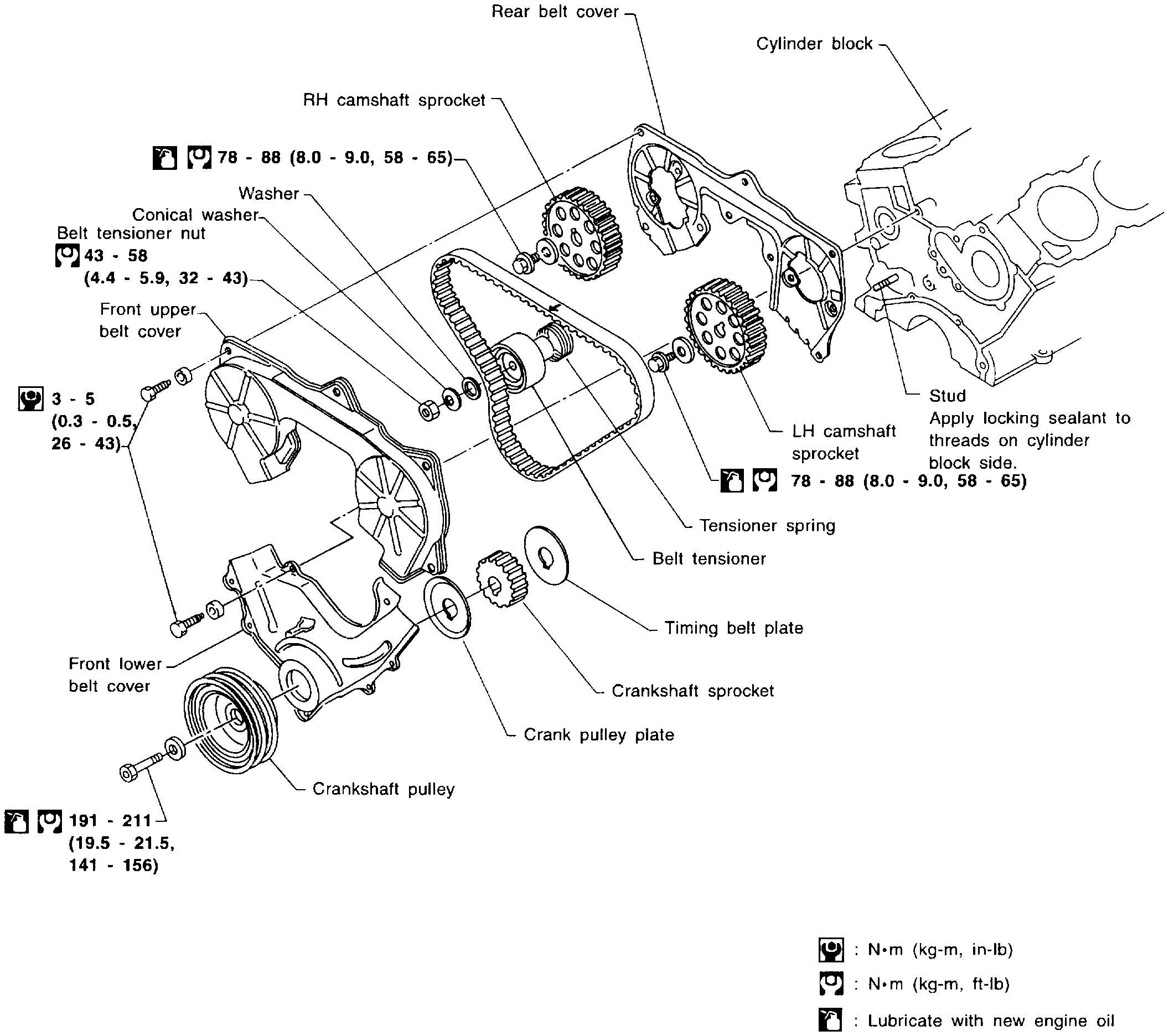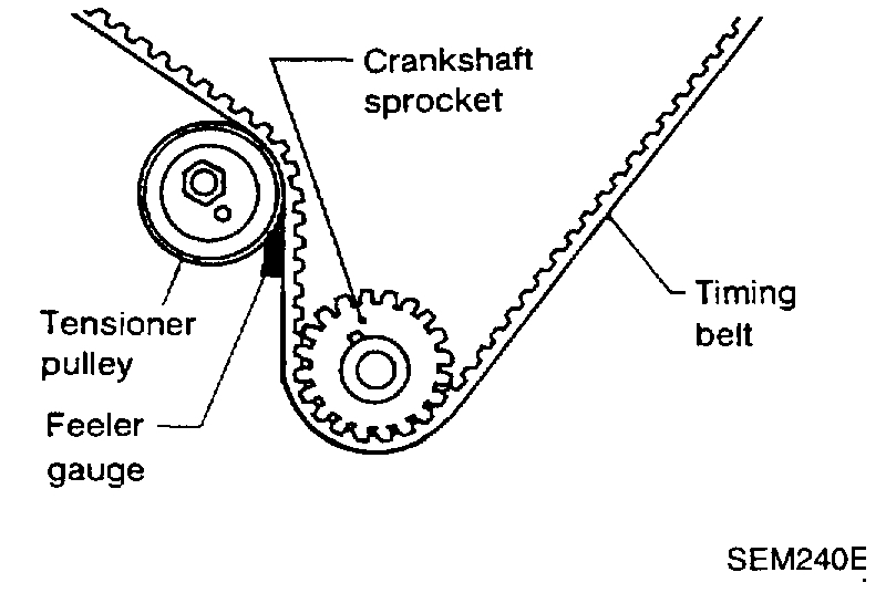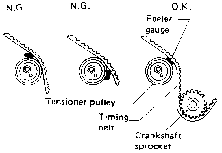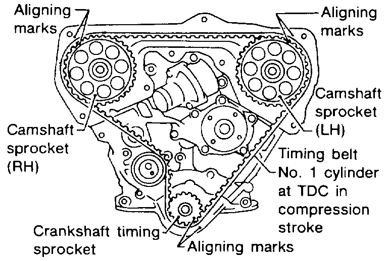 - After removing timing belt, do not turn crankshaft and camshaft separately because valves will strike piston heads.