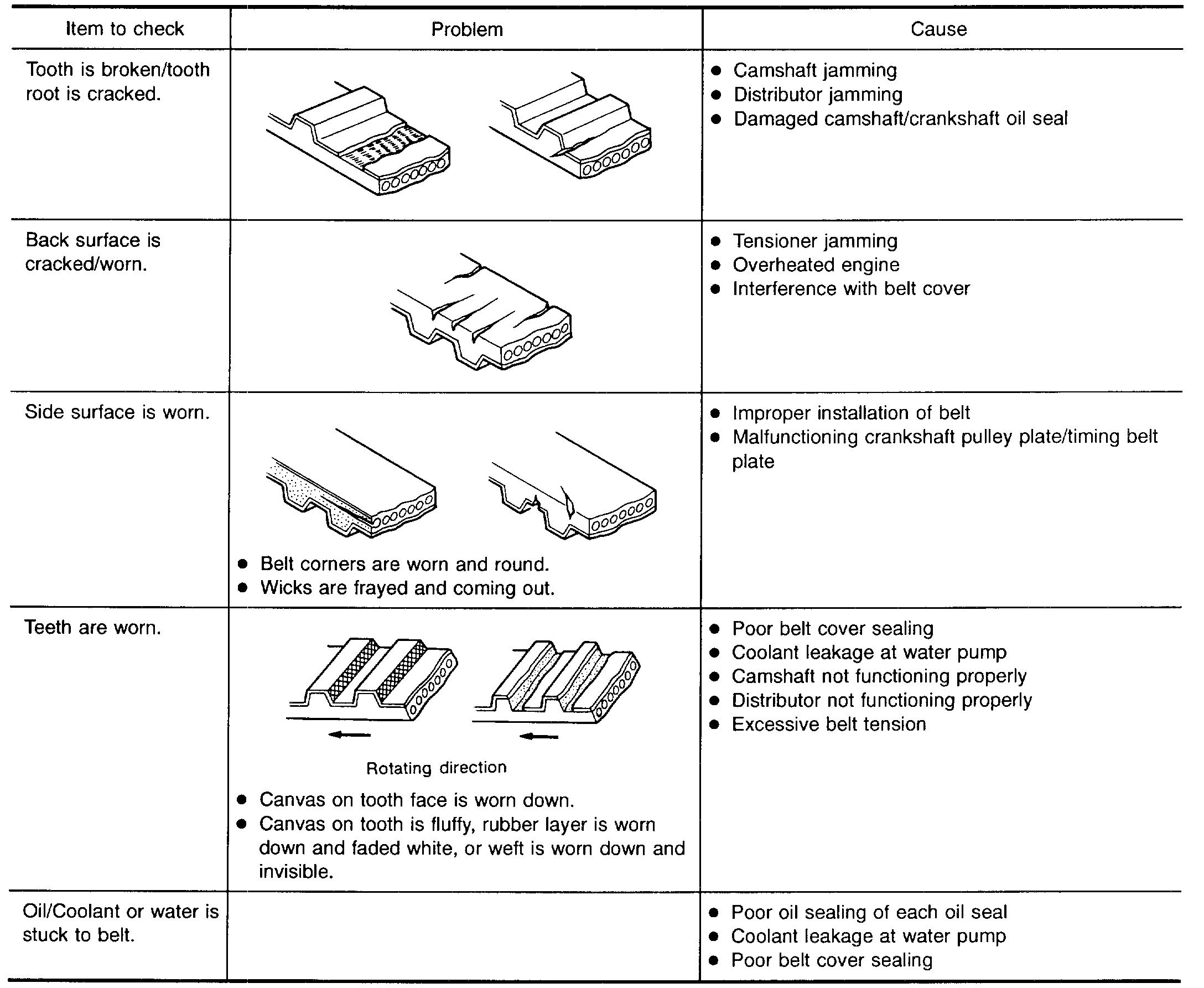 Visually check the condition of timing belt. Replace if any abnormality is found.
