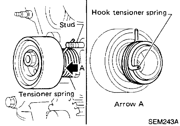2. Check condition of tensioner spring.