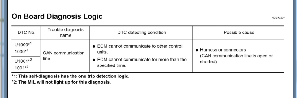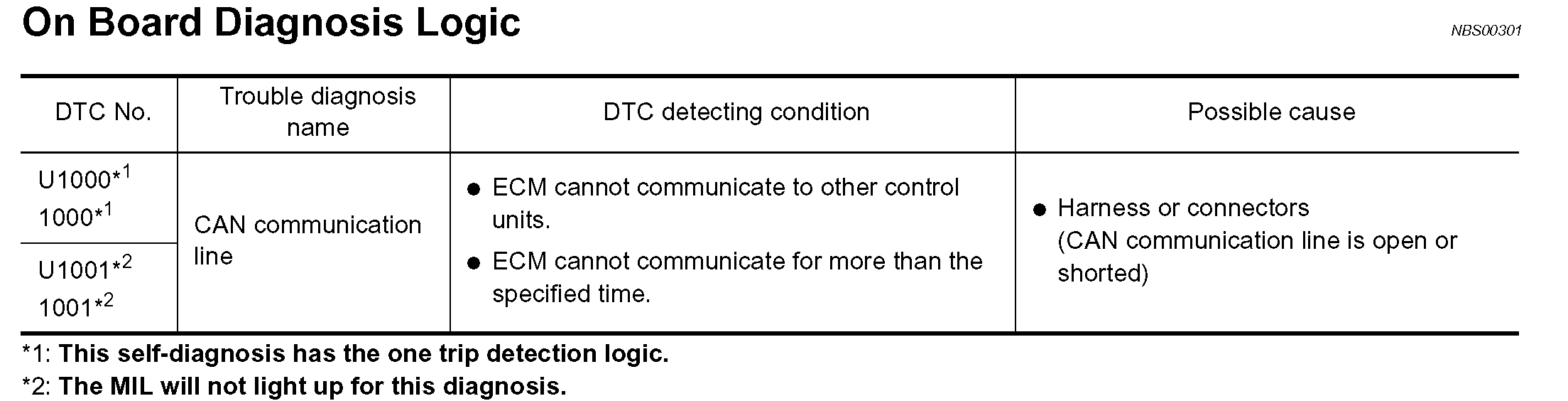 DTC U1000, U1001 CAN COMMUNICATION LINE