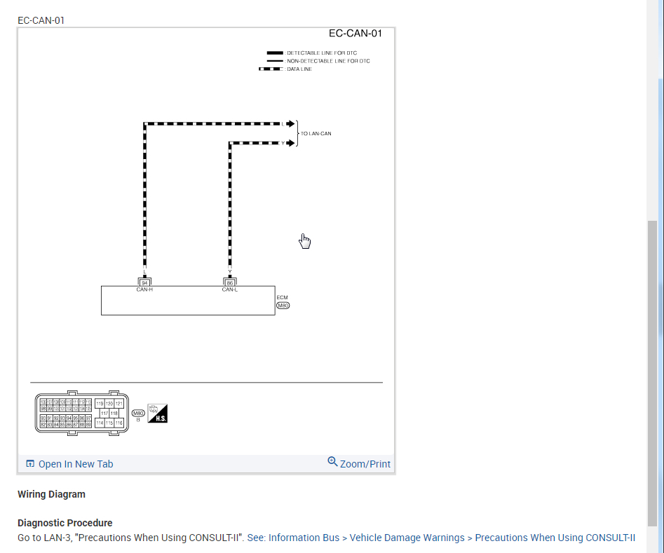 Go to LAN-3, "Precautions When Using CONSULT-II". See: Information Bus > Vehicle Damage Warnings > Precautions When Using CONSULT-II